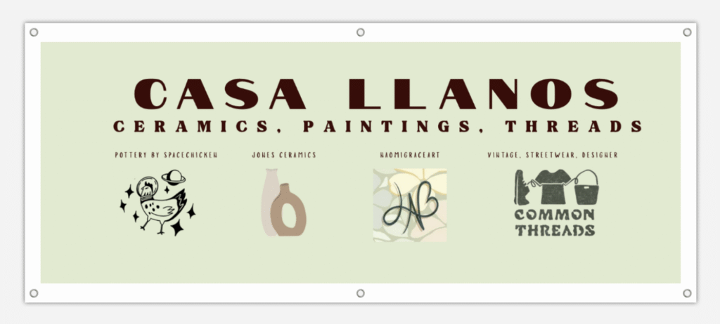 We are all related, so we decided to call our joint pop-up Casa Llanos. Offering Ceramics • Paintings • Threads